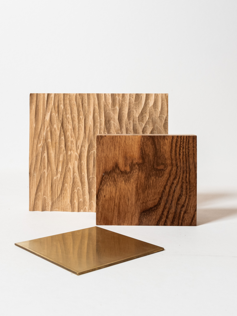Nous explorons et sublimons la matière brute. Intemporel et vivant, le bois constitue notre base, pour sa texture, sa lumière et sa capacité à dialoguer avec d’autres matériaux : métaux, papiers, pierre.