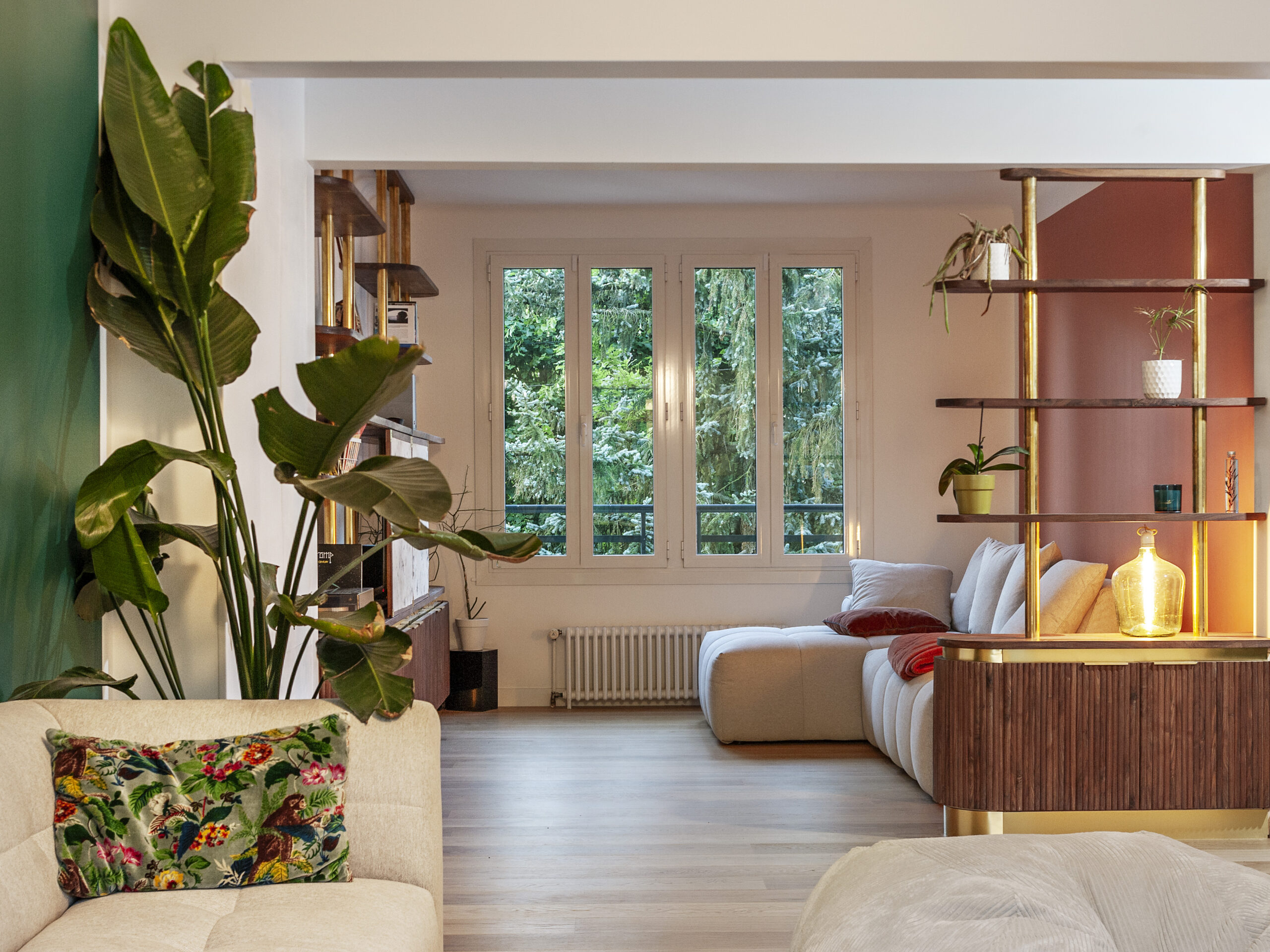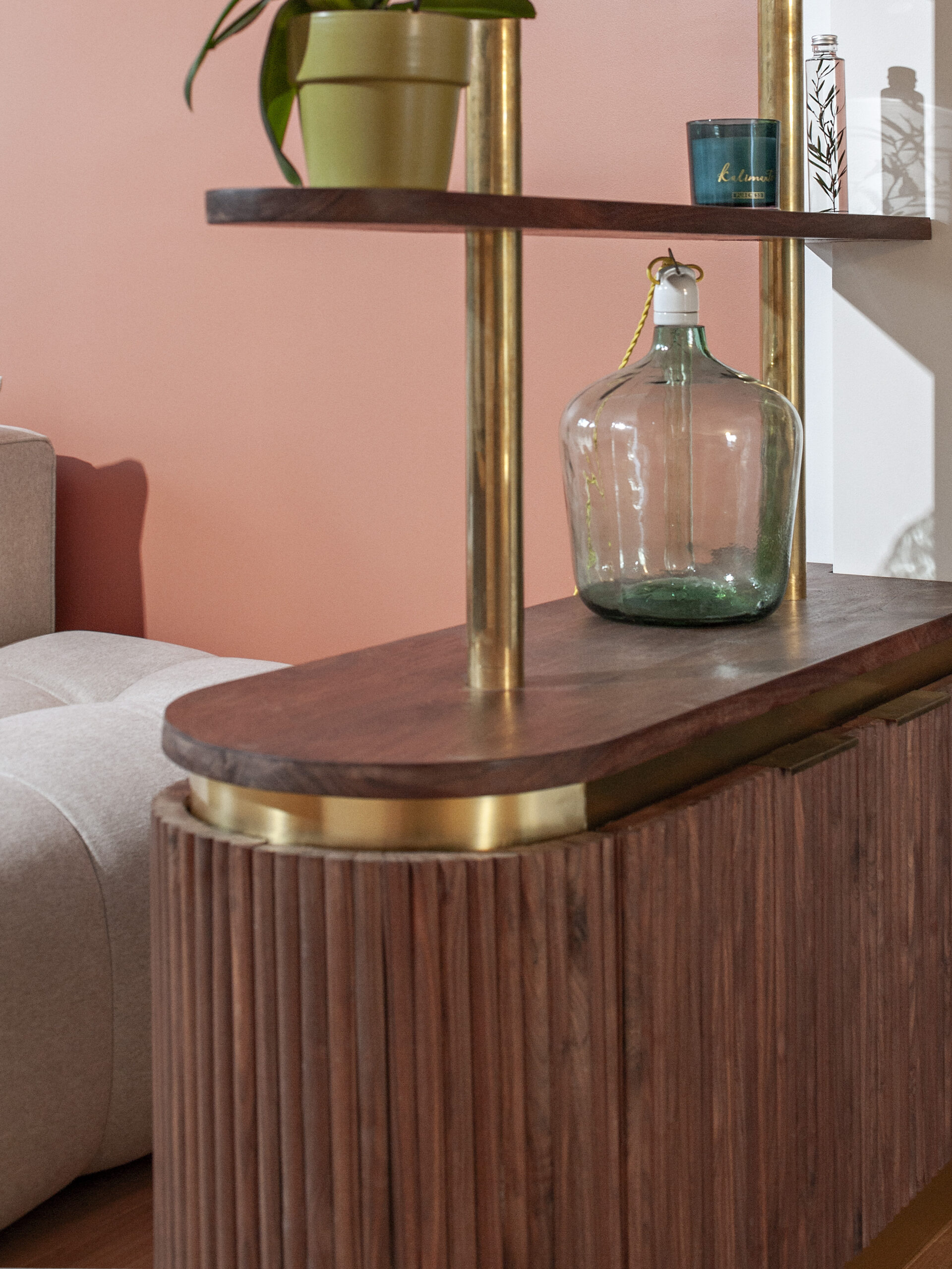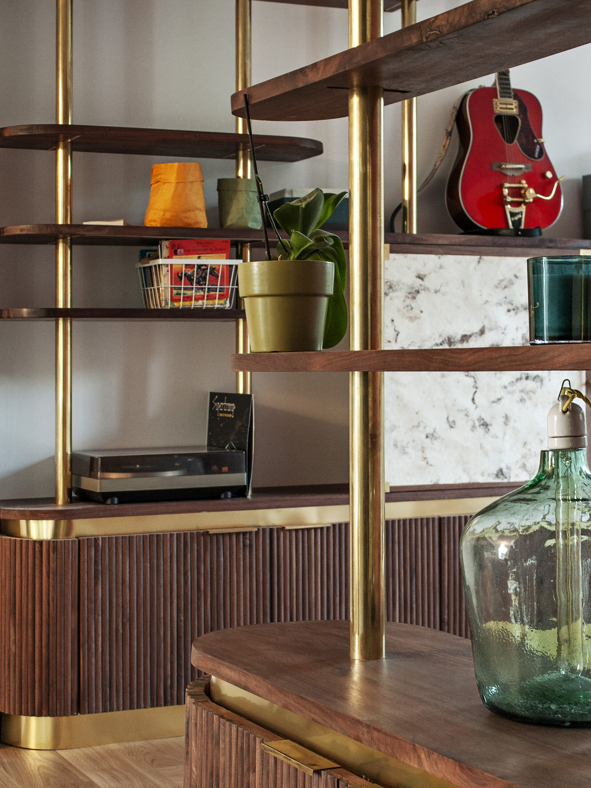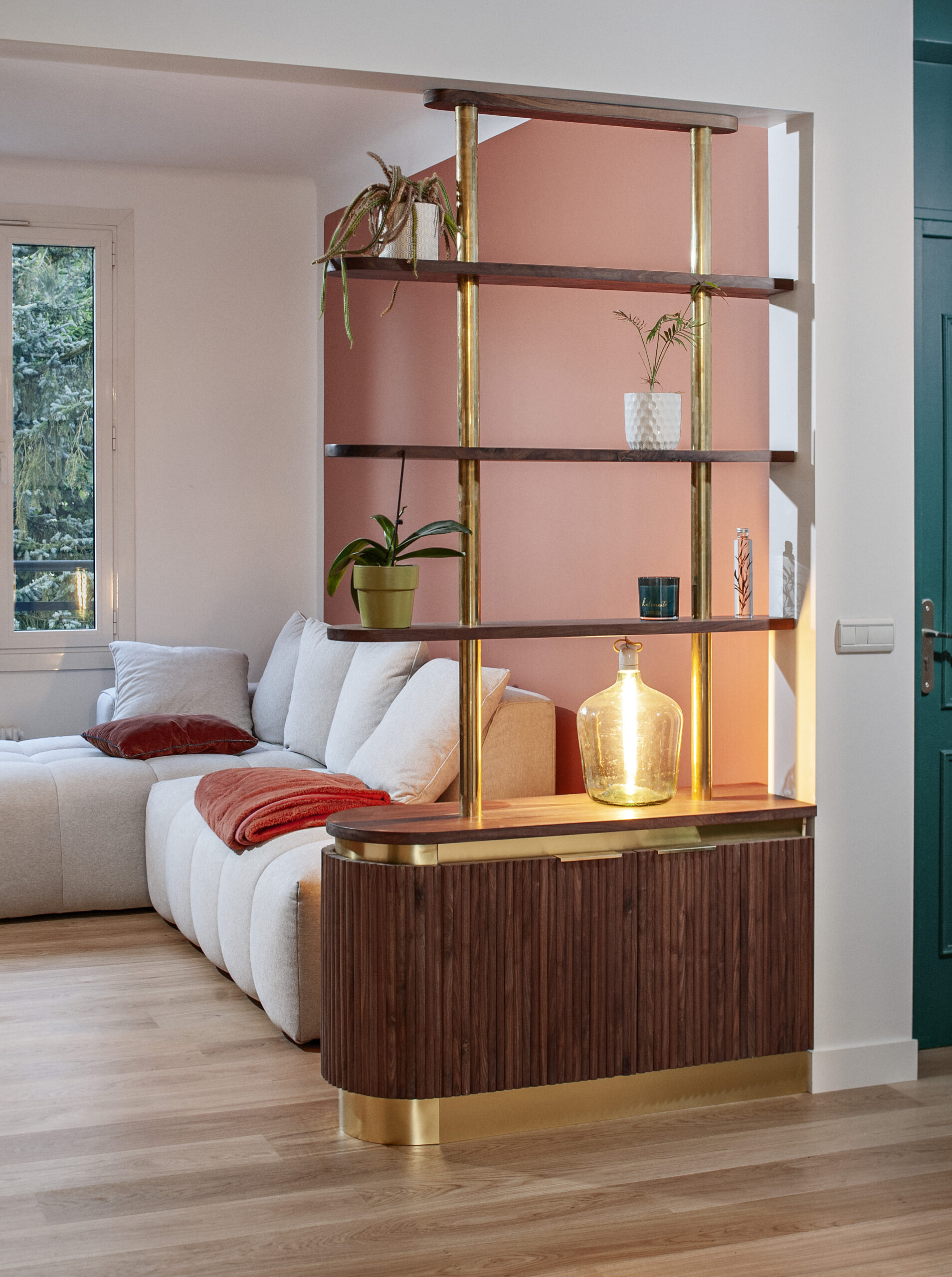 The request of the client was to realize the small living room of a renovated house of the 70s. The key words were chic and elegance in an intimate and warm atmosphere. Customers wanted to hide the TV and have storage for their everyday belongings while highlighting some elements of music and literature.