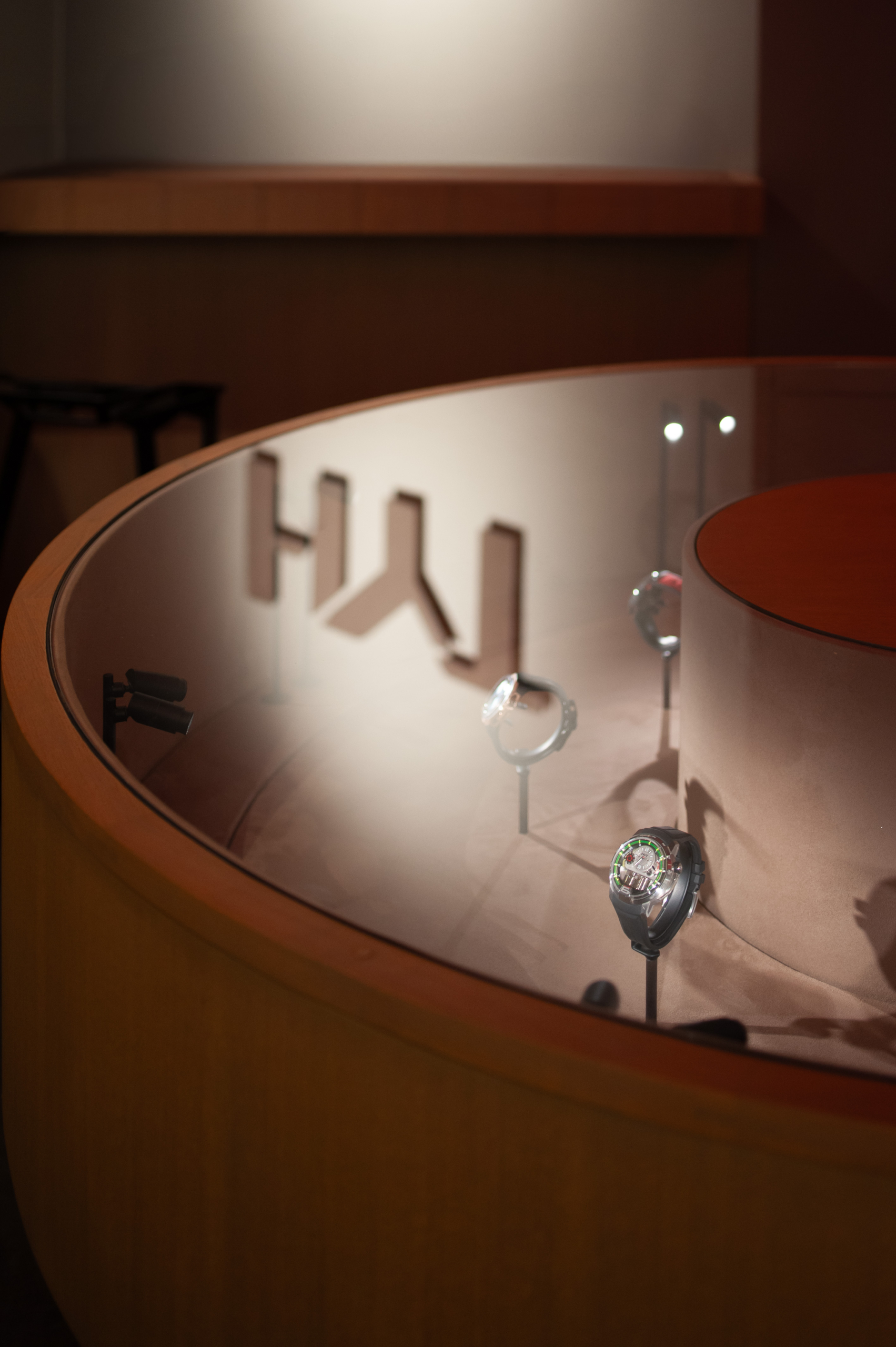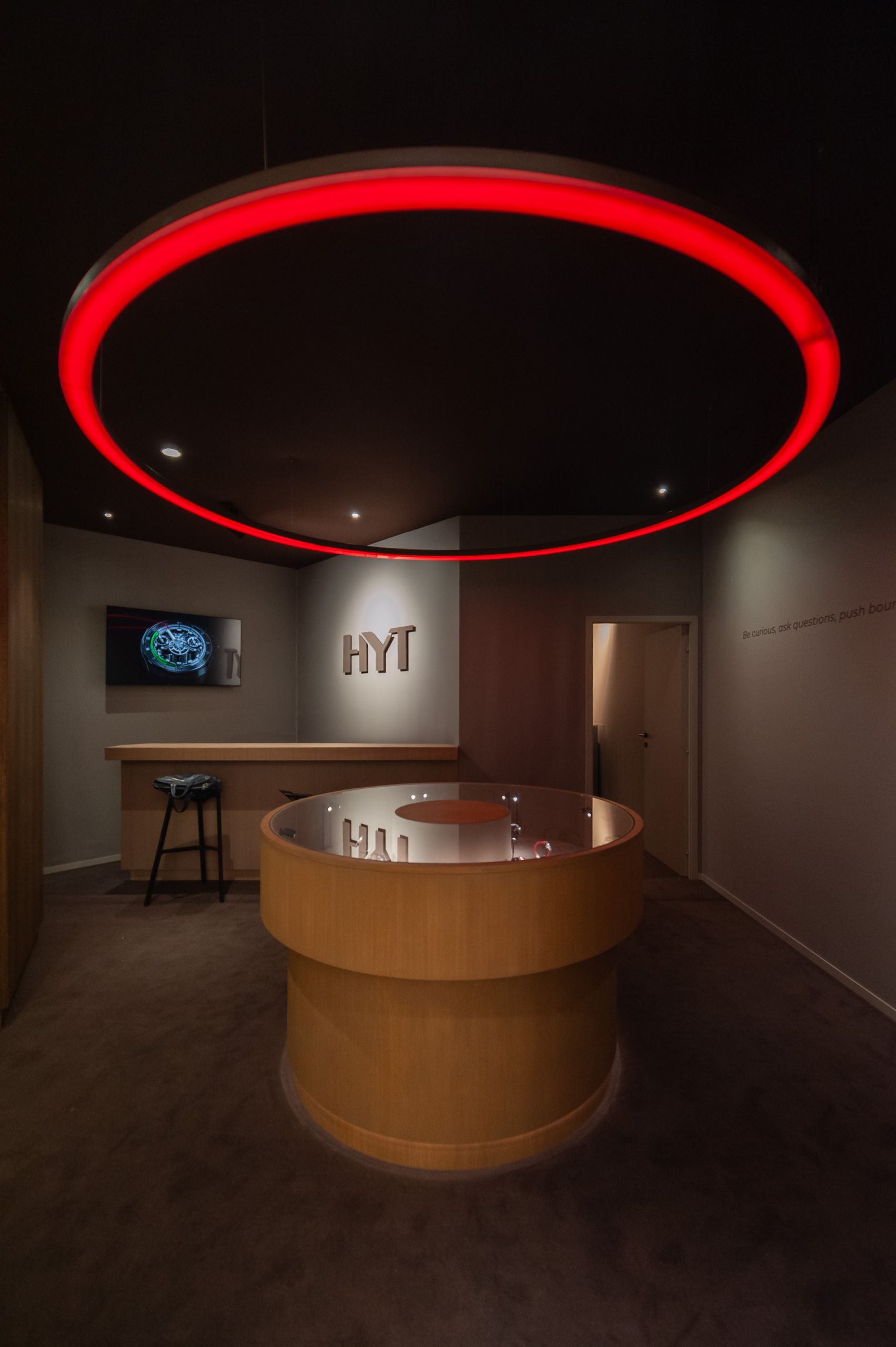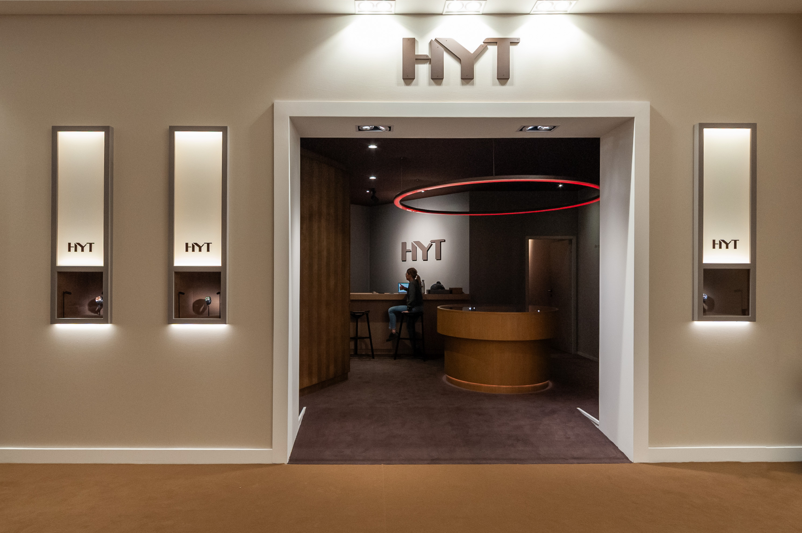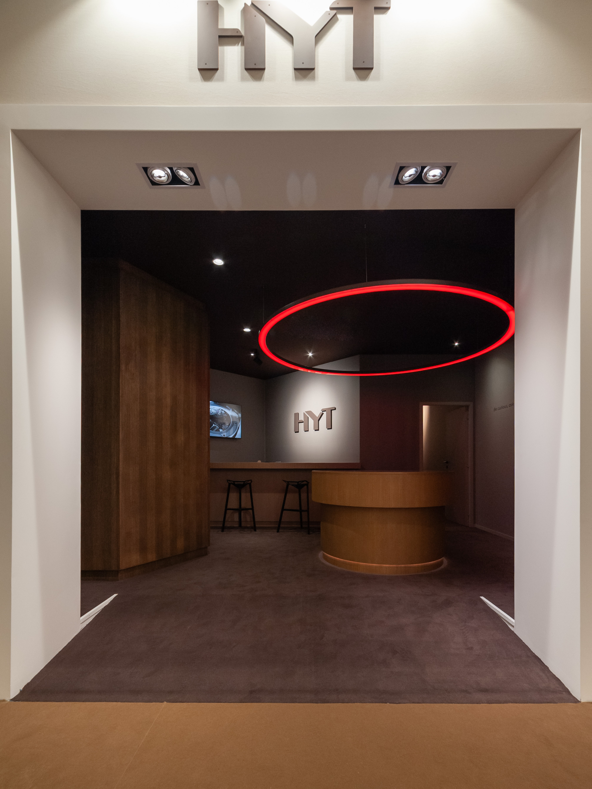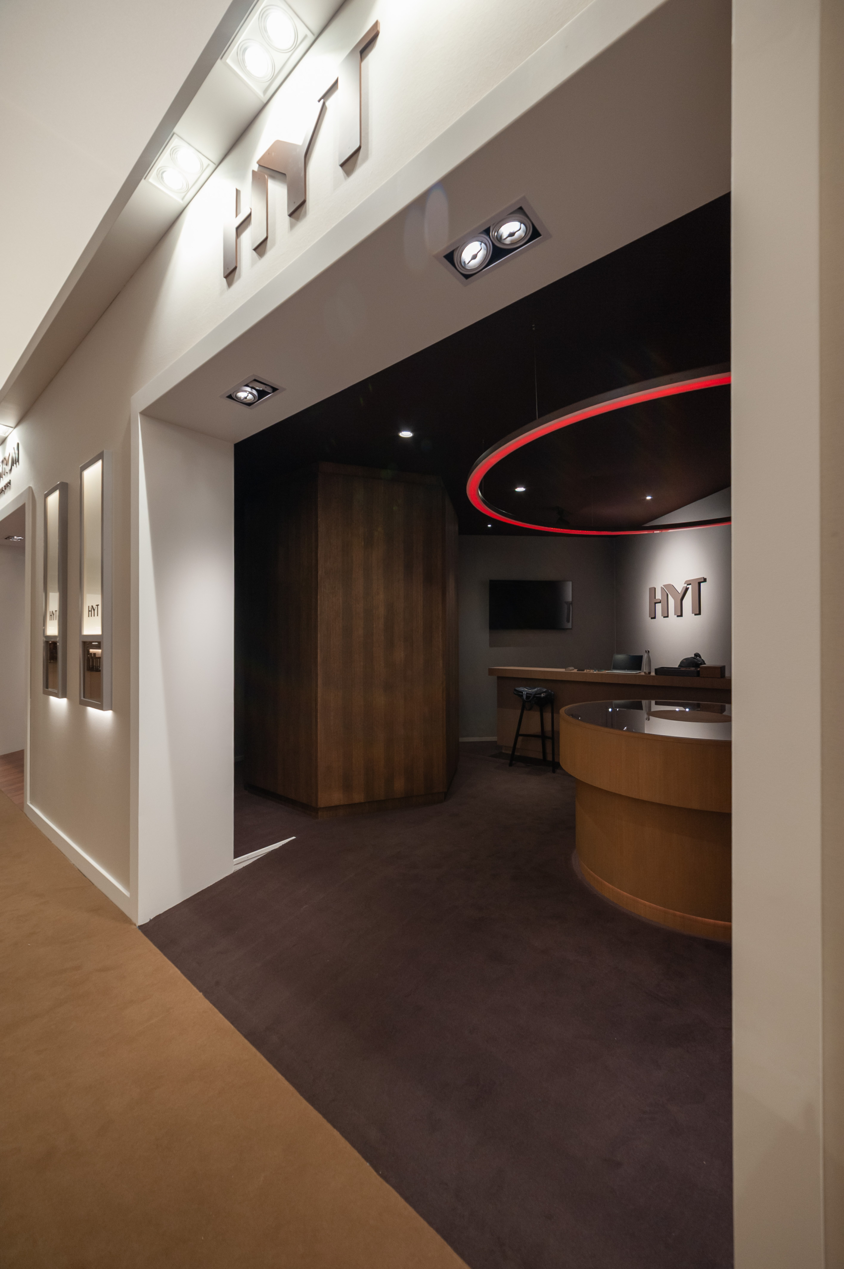 L’atelier Alban Chassagne a accompagné l’atelier Nicolas Perrottet et du designer Giancarlo Mino dans la réalisation du stand de la marque horlogère HYT, à l’occasion du salon Palexpo Genève, Watch and Wonders.