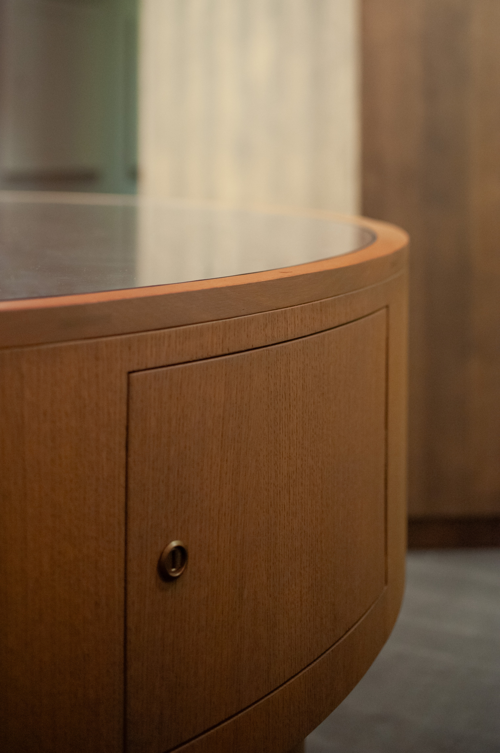 Nous avons assuré la fabrication d’un desk d’accueil au design épuré, un passe-montre personnalisé, ainsi qu’une vitrine centrale ronde, pièce maîtresse de l’espace avec au dessus la suspension gigantesque de 28m de diamètre.