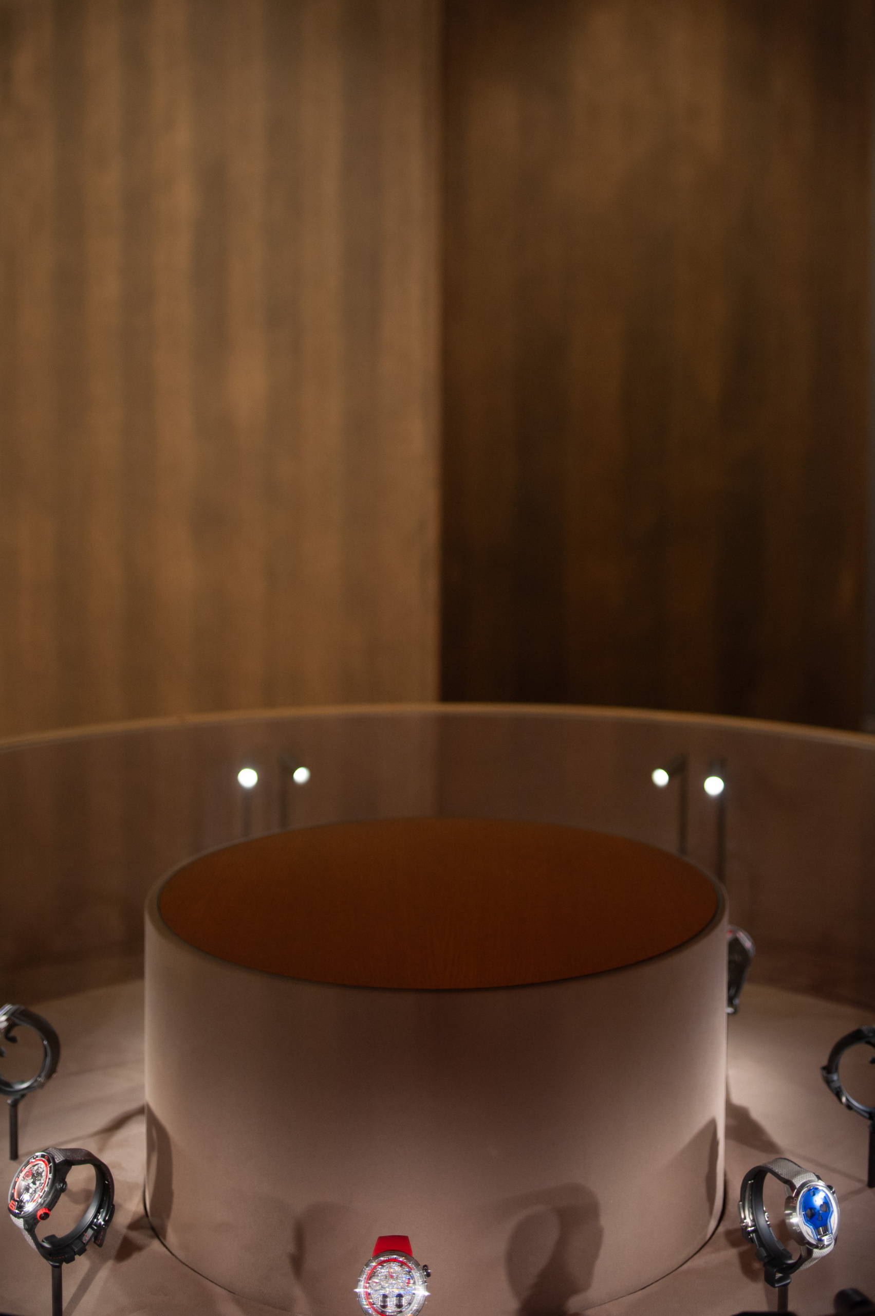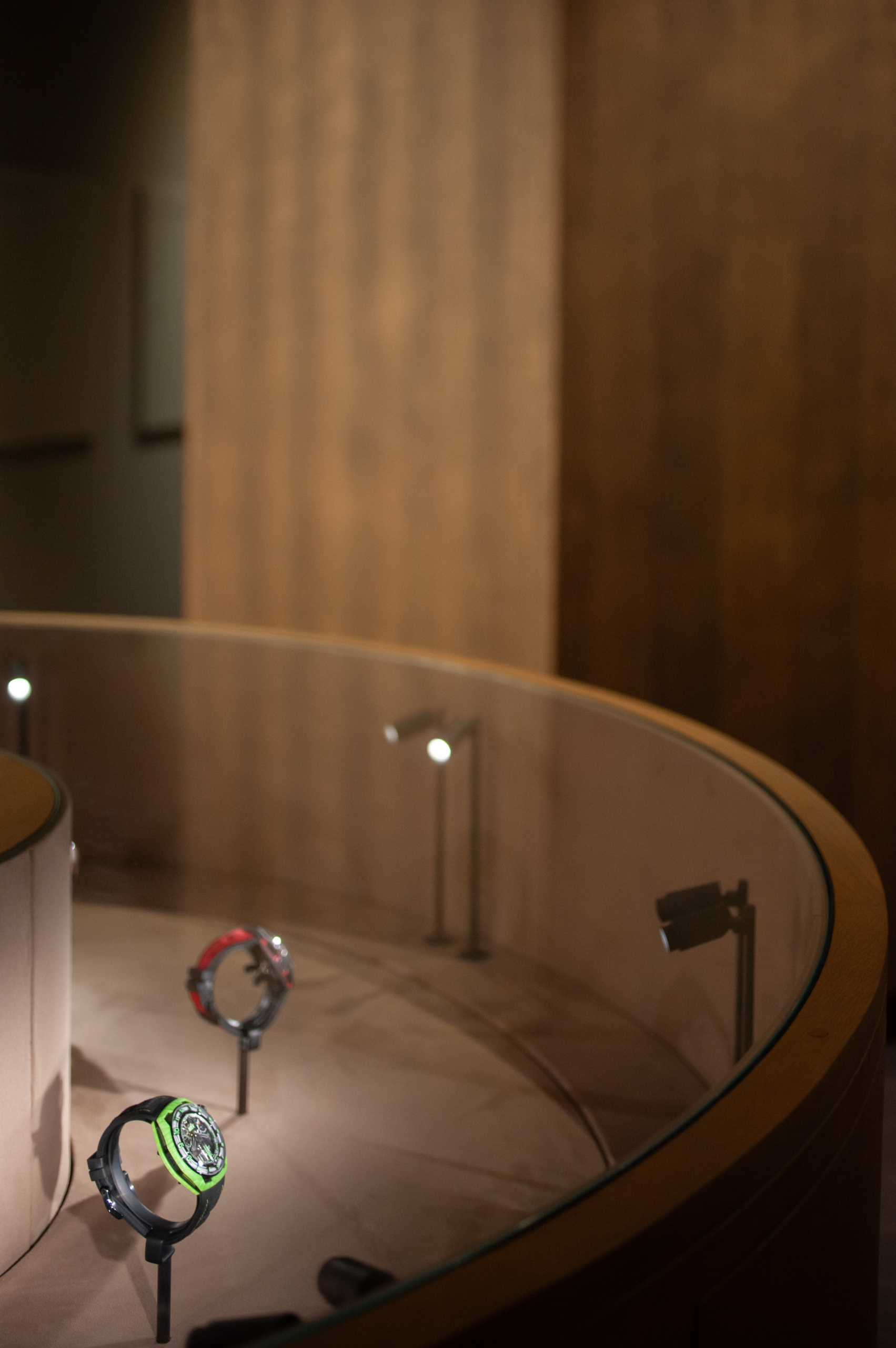 Nous avons également conçu plusieurs vitrines extérieures, pensées pour mettre en valeur les garde-temps dans un écrin de lumière, ainsi qu’un module hexagonal immersif, offrant une expérience sensorielle en lien direct avec l’identité de la marque.